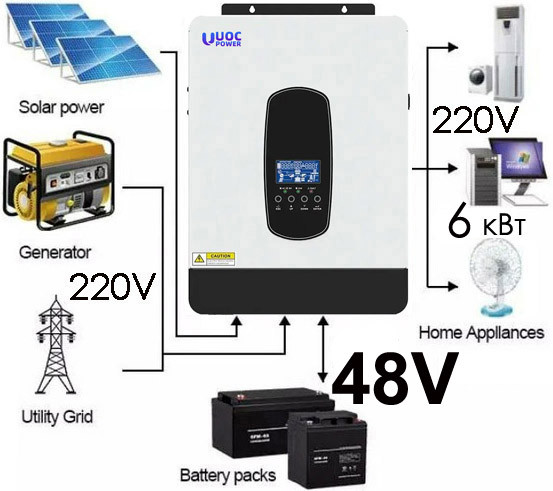 Гібридний сонячний інвертор 48V UOC-SM-7KVA/6200W з MPPT контролером